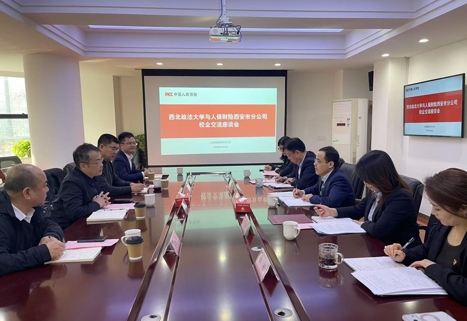 为深化校企合作,拓展协同育人合作渠道,2月4日,我校与中国人民财产保险股份有限公司西安市分公司举行校企合作交流座谈会。双方围绕人才培养、实习就业、科研项目合作等内容进行了深入交流。我校副校长赵全宇,人保财险陕西省分公司党委委员、副总经理、西安市公司党委书记、总经理陈永安出席会议。 座谈会由陈永安主持,他代表人保财险西安市分公司对我校一行来访表示热烈欢迎,并围绕公司发展历程、主营业务以及在服务地方经济社会发展、履行社会责任等方面的实践情况作了详细介绍。 赵全宇介绍了我校的办学历史、学科特色和人才培养优势。他表示,学校高度重视校企协同育人,希望以此次交流为契机,在人才培养、科研合作和社会服务等方面与人保财险西安市分公司建立长期、务实的合作关系。 与会双方围绕法学及相关专业人才培养模式、学生实习就业机制、保险法疑难案件论证以及保险法学科建设等议题展开深入讨论,并就探索建立常态化交流机制达成初步共识。本次座谈为我校与人保财险西安市分公司进一步深化合作奠定了良好基础,对推动产教融合、提升人才培养质量、拓宽学生就业渠道具有积极意义。 经济法学院党委书记李永宁,国内合作与校友工作处等相关负责人参加座谈。 (供稿:经济法学院(知识产权学院) 撰稿:常鑫 审核:李永宁)
