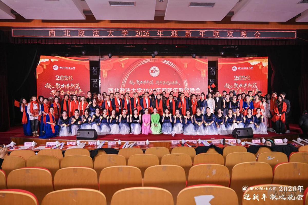法韵悠长,共贺新岁;初心如炬,照亮新程。12月28日晚,西北政法大学“凝心聚力谱新篇 携手奋进向未来”2026年迎新年联欢晚会在长安校区满天星学术报告厅举行。全体在家校领导,学校离退休老同志代表,各部门、各学院师生代表齐聚晚会现场,共同书写这场辞旧迎新的动人篇章,用真情演绎对新年的美好祈愿。
