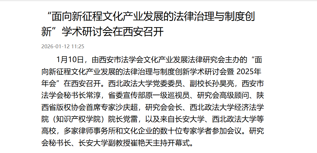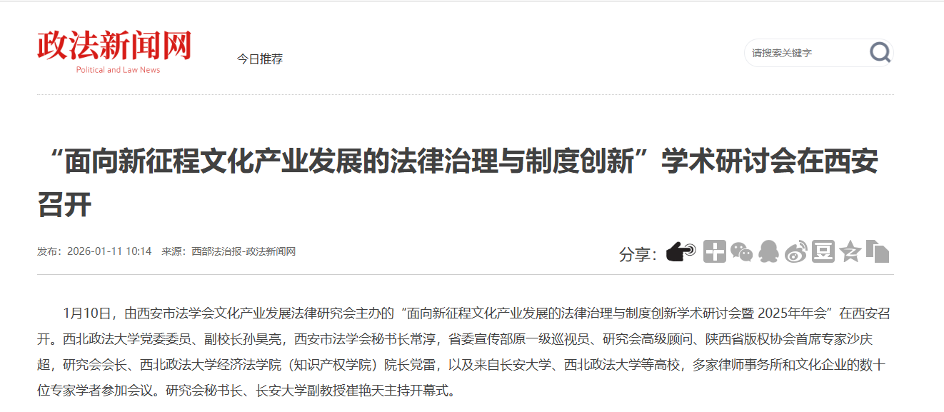 【政法新闻网】“面向新征程文化产业发展的法律治理与制度创新”学术研讨会在西安召开