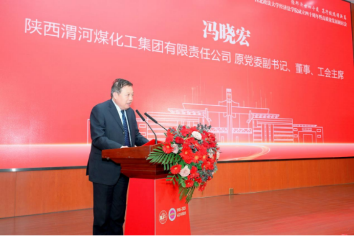 1985级校友、陕西渭河煤化工集团有限责任公司原党委副书记冯晓宏在发言中饱含感恩之情,分享了自己在学院习得专业理论、塑造“明法致公、经世济民”价值追求的青春岁月,代表广大校友郑重表态,将永葆初心弘扬学院优良传统,以卓越业绩回报母校,积极为学院发展添砖加瓦,守护共同的精神家园。