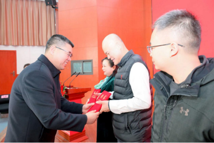 捐赠环节中,1992级校友邹义捐赠中华现代学术名著丛书262册并发言,传递校友反哺之情。国内合作与校友工作处处长刘霖杰接受捐赠。