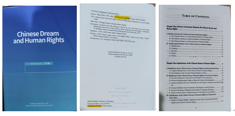 近日,我校外国语学院法律翻译中心主任付欣副教授团队翻译的《中国梦与人权发展》英文版(chinese dream and human rights)由美国william s. hein & co., inc正式出版,并收录于china law & society library系列丛书。该译作是外国语学院法律翻译中心“国际法治与人权”系列翻译项目的第三部成果。