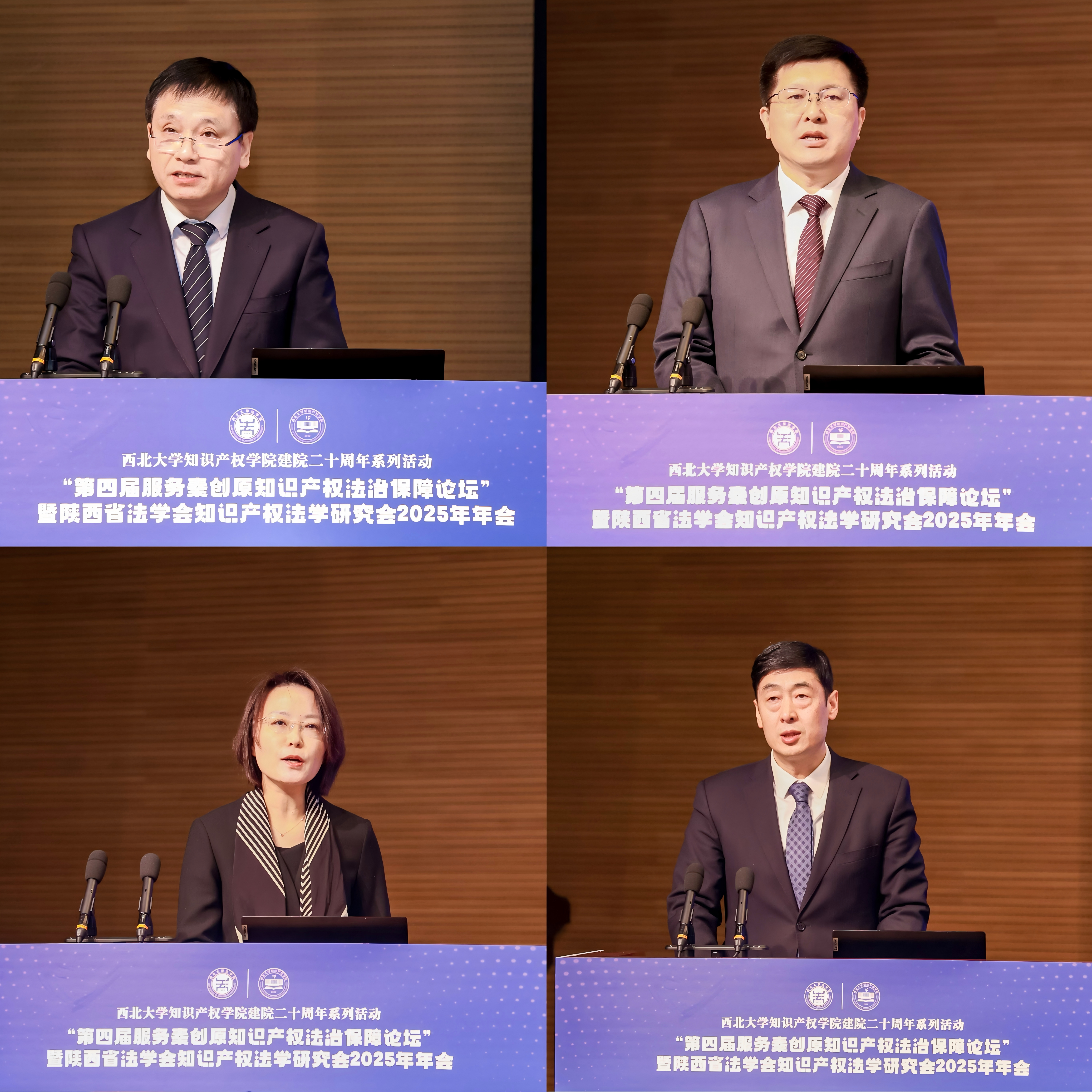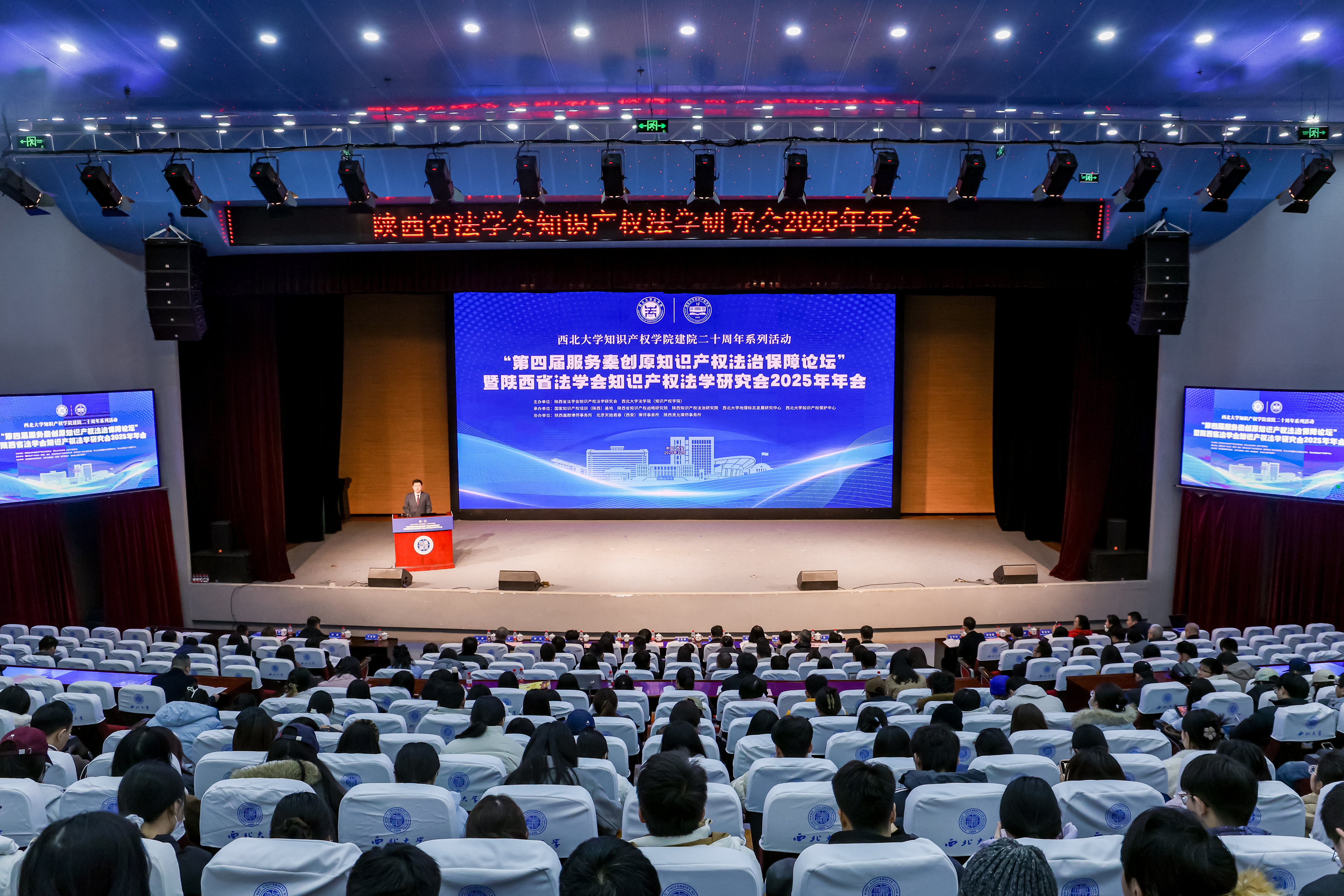 12月13日,“第四届服务秦创原知识产权法治保障论坛”暨陕西省法学会知识产权法学研究会2025年年会在西北大学长安校区举行。本次会议由陕西省法学会知识产权法学研究会(挂靠我校经济法学院〔知识产权学院〕)主办。西北大学党委副书记、纪委书记、省纪委监委驻校纪检监察组组长肖道远,陕西省人民检察院党组成员、副检察长张克祯,陕西省知识产权局党组成员、副局长李晓鸣,我校副校长、知识产权法学研究会会长孙昊亮,陕西省法学会综合部副主任赵敏,西北大学法学院(知识产权学院)院长、知识产权法学研究会副会长王思锋等出席会议。