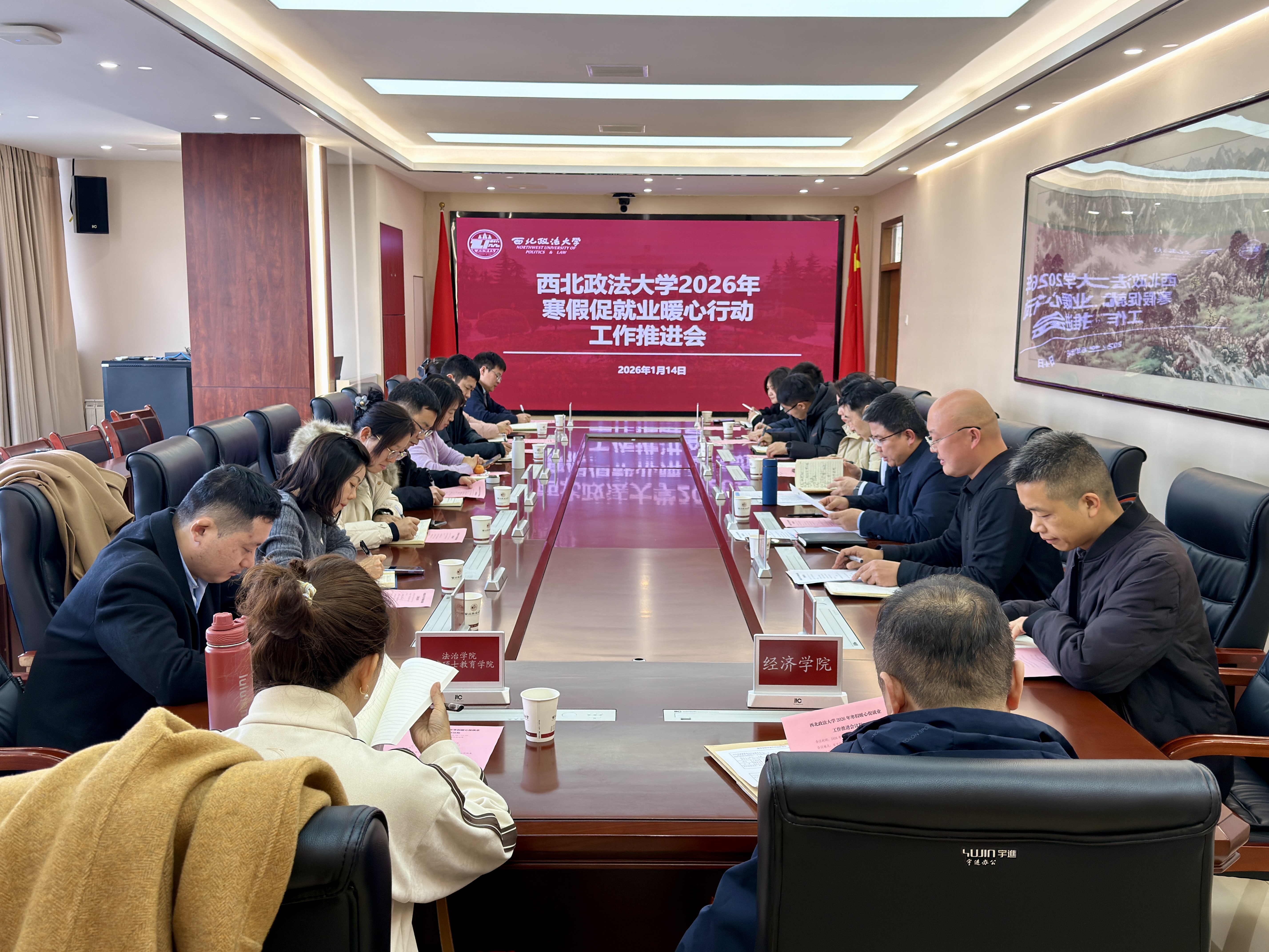 为深入贯彻落实中央经济工作会议关于稳就业、保民生的重要部署,扎实推进2026届毕业生就业工作,1月14日下午,我校在长安校区校务楼四楼大会议室召开寒假促就业暖心行动工作推进会。校党委委员、副校长孙昊亮出席会议并讲话,校党委委员、招生就业处处长燕福民,各学院主管学生工作书记(副书记)、就业创业指导中心全体人员参加会议。会议由招生就业处副处长杨军主持。