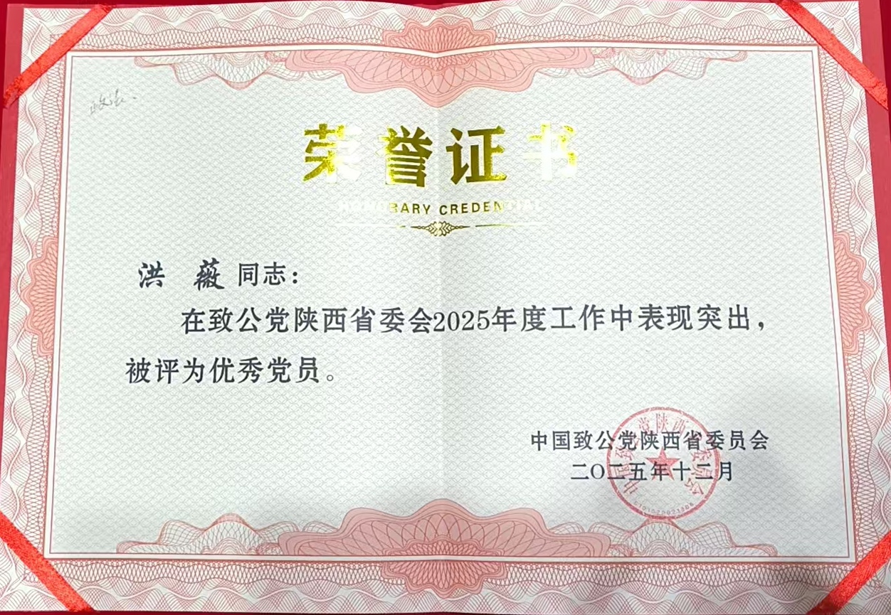 近日,中国致公党陕西省委员会发布《关于表彰2025年度先进集体及个人的决定》,我校致公党党员洪薇长期立足专业特长服务社会,积极建言献策,获评“优秀党员”荣誉称号。