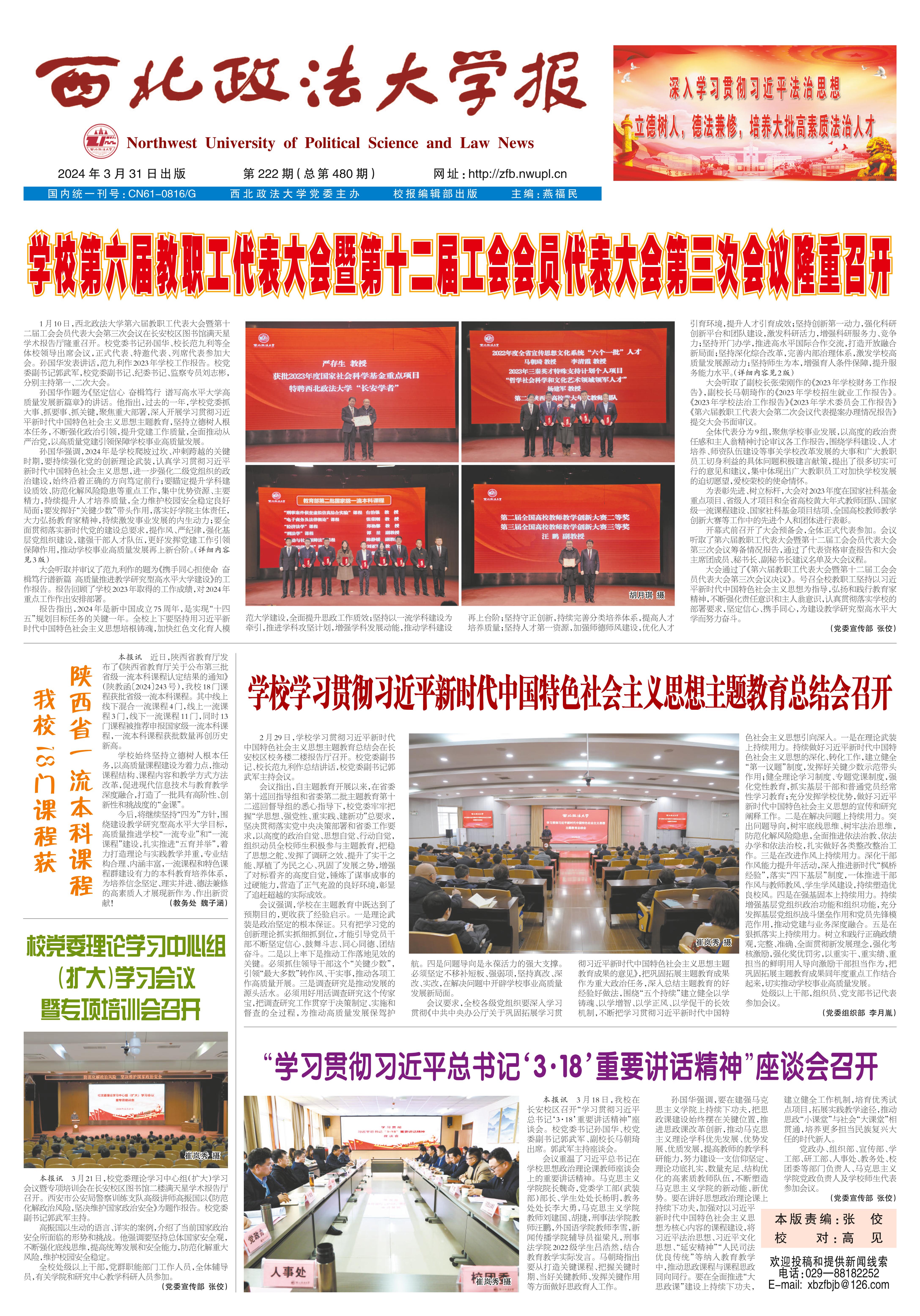 《西北政法大学报》第222期 -九游会官网登录入口网页